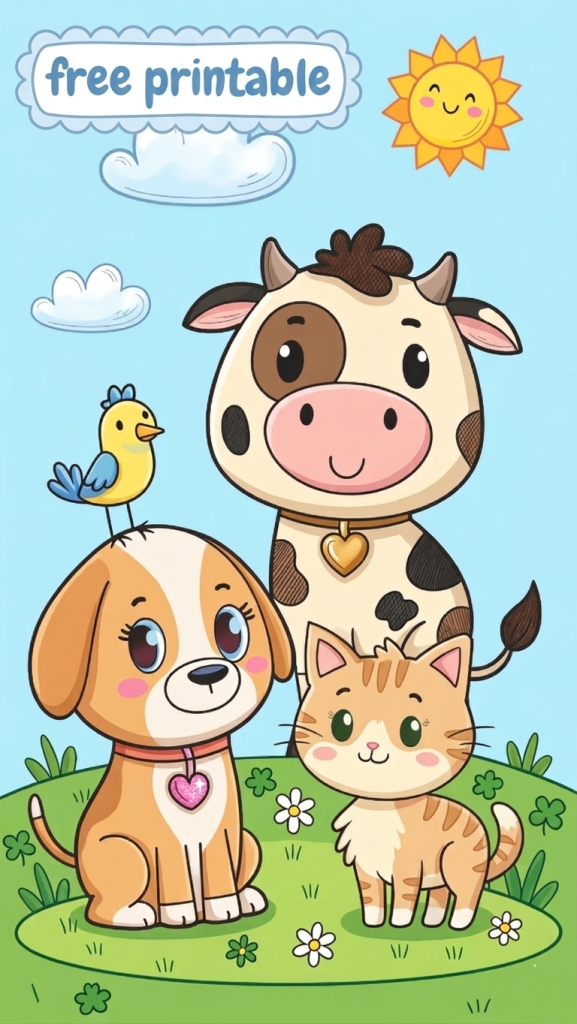 - Farm Friends: The Playful Puppy, Cute Kitty, and Busy Bee.